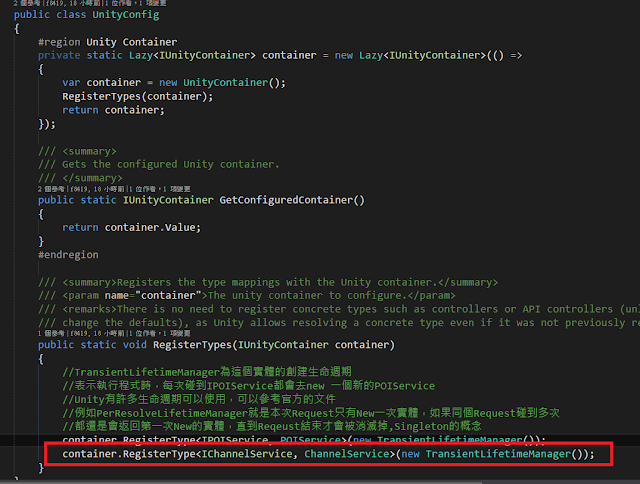 - 別忘記到Unity把Interface與實體的關係註冊起來