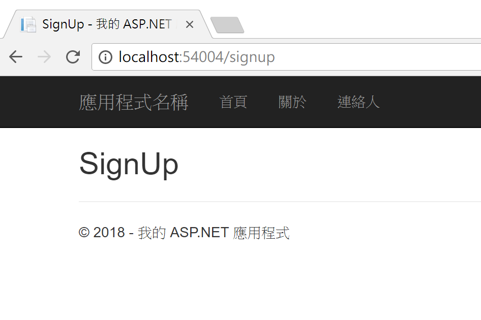 接著直接執行,應該就能看到我們剛剛做出來的SignUp頁面